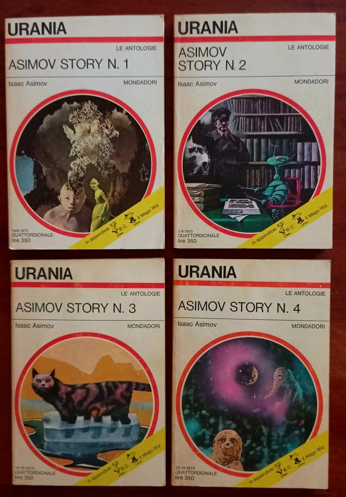 Mondadori Urania 1973 Le antologie n. 625/626/629/630 Brossura editoriale in 8vo, opera completa in 4 volumi Buone condizioni compatibilmente con l’età, ordinari segni d’uso e del tempo, brunitura carta/copertine. Come da corredo fotografico