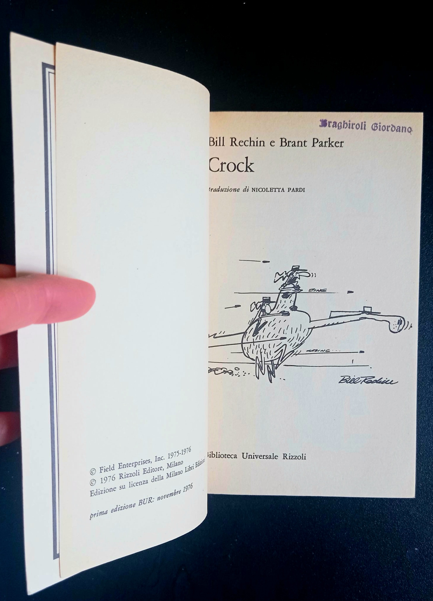 Bill Rechin e Brant Parker BUR Rizzoli 1976 Prima edizione Brossura editoriale, in 16mo, pp. 127 Molto ben tenuto compatibilmente con l’età; volume integro e compatto. Piccolo timbrino di proprietà all’occhiello, fisiologica brunitura carta, alonatura al taglio pagine superiore