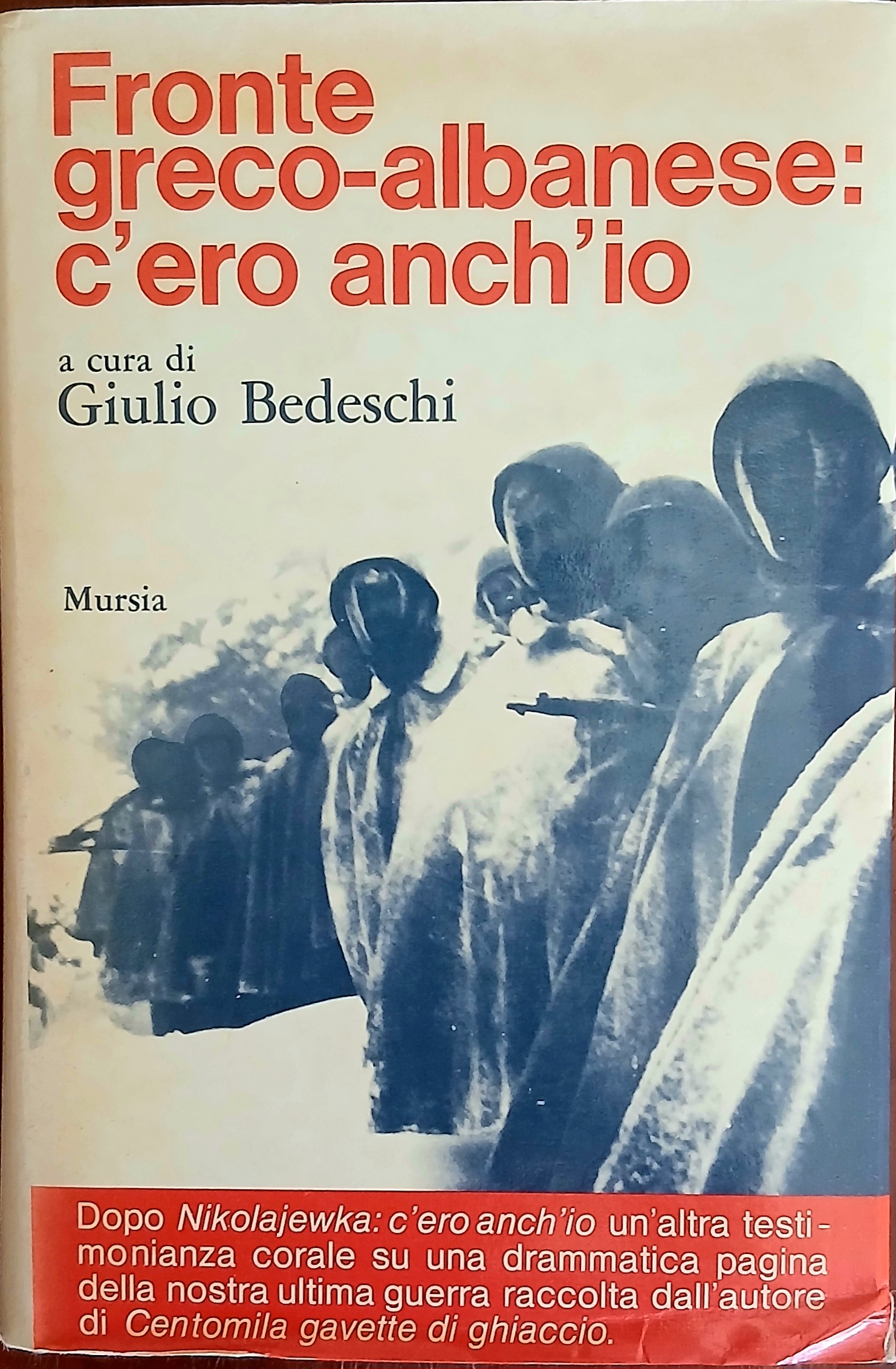 a cura di Giulio Bedeschi Mursia Prima edizione 1977 Copertina rigida con sovraccoperta, in 8vo, pp. 684; alcune fotografie in b/n f.t. Buone condizioni compatibilmente con l’età; sovraccoperta con strappettino a uno spigolo e triangolino prezzo tagliato al risvolto; interno compatto e senza segni d’uso, carta brunita