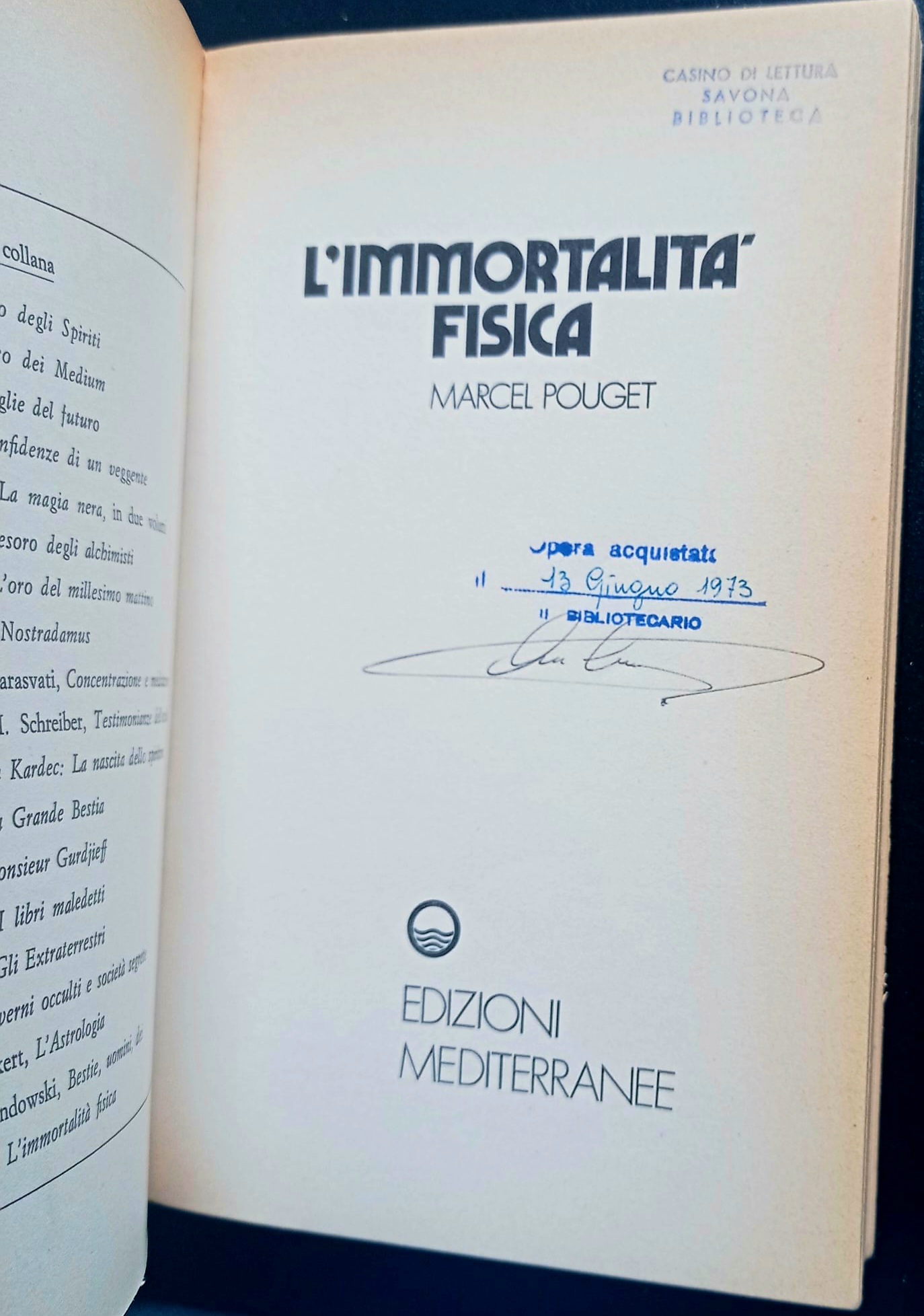 Edizioni Mediterranee 1973 Collana Biblioteca dei Misteri Brossura editoriale con risvolti, in 8vo, pp. 295 Buone condizioni, brunitura del tempo, timbri da biblioteca estinta al frontespizio e al fondo di 4-5 pagine