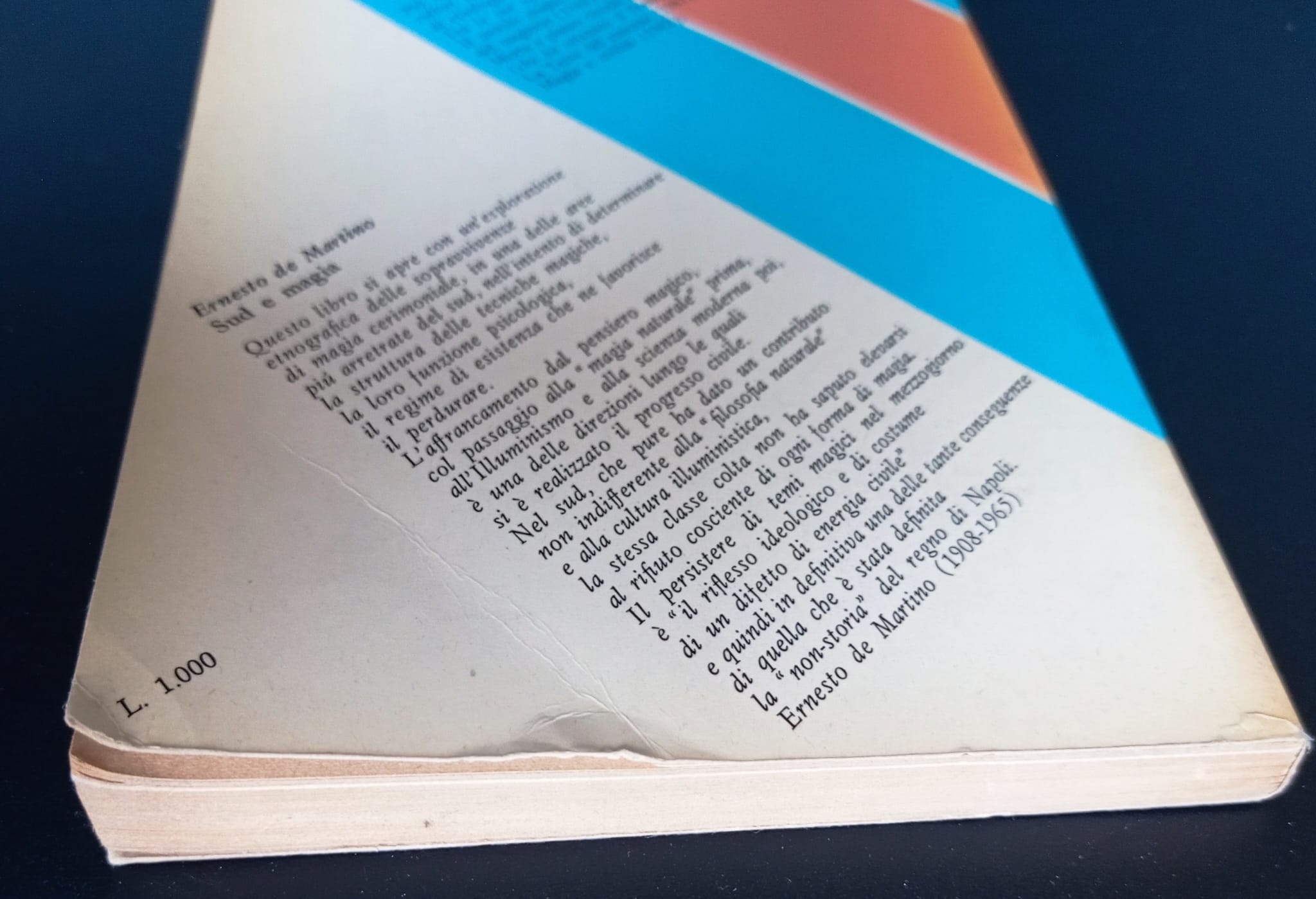 Ernesto de Martino Feltrinelli 1966 Collana SC/10 prima edizione Brossura editoriale, in 8vo, pp. 154, illustrazioni in b/n f.t Discrete condizioni, copertina con pieghe e ammaccatura in quarta, timbro U in terza di copertina, pagine integre e senza segni d’uso, carta molto brunita. Il prezzo tiene conto delle condizioni