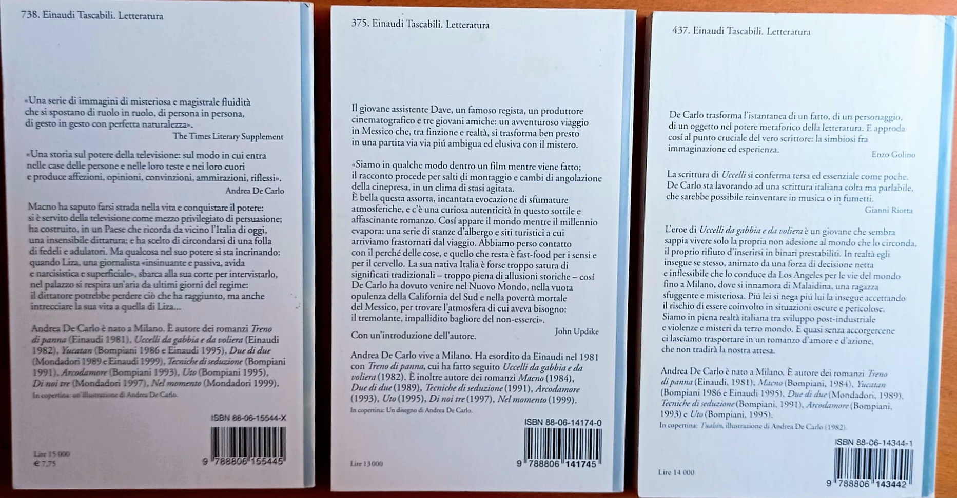 Lotto di 3 volumi di Andrea De Carlo Einaudi Tascabili 1982-2003 Brossura editoriale, in 8vo Ordinari segni d’uso e del tempo. Come da foto