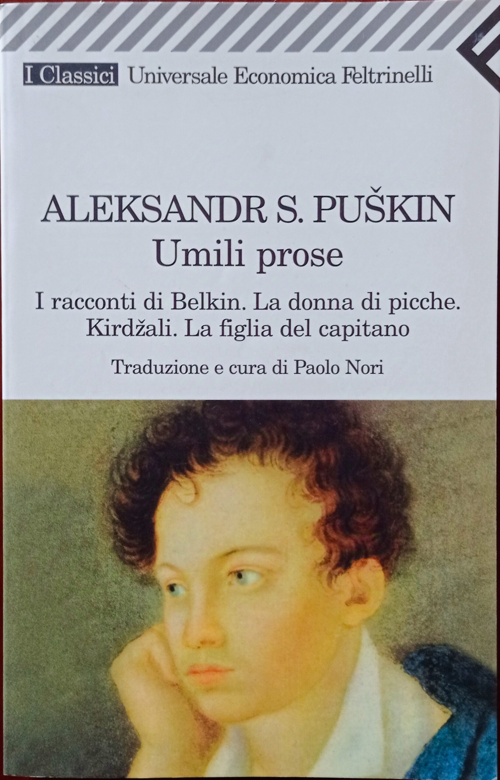 Oltre che per le opere di poesia e di teatro, Puskin è considerato un classico anche per i suoi racconti che hanno lasciato una potente impronta sulla narrativa russa successiva, al punto che autori come Tolstoj ne raccomandano la lettura e lo studio. “I racconti di Belkin”, che furono tradotti in francese da Mérimée, rappresentano semplici figure, dai sentimenti autentici, in una narrazione lineare e con splendide scene di sfondo. Sono cinque racconti che l’autore attribuisce a un certo Ivan Petrovic Belkin, che li avrebbe uditi raccontare e poi trascritti: sono la storia di un duello rimandato e di un rancore covato nel tempo, quella di un amore contrastato tra una ricca fanciulla e un semplice fante, quella di un fabbricante di bare e del suo invito ai morti ad andarlo a trovare, quella di un padre vedovo lasciato solo dall’unica figlia, e quella di una nobile di provincia che inganna in amore il povero vicino. “La dama di picche” è uno dei racconti più caratteristici di Pu.kin: mescolando alla narrazione realistica elementi fantastici, narra dell’ossessione, fino alla follia, di un giovane per il segreto di una contessa che vince sempre alle carte. “La figlia del capitano” è un romanzo storico ispirato alla rivolta di Pugacëv. Chiude il volume il racconto “Kirdzali”.
